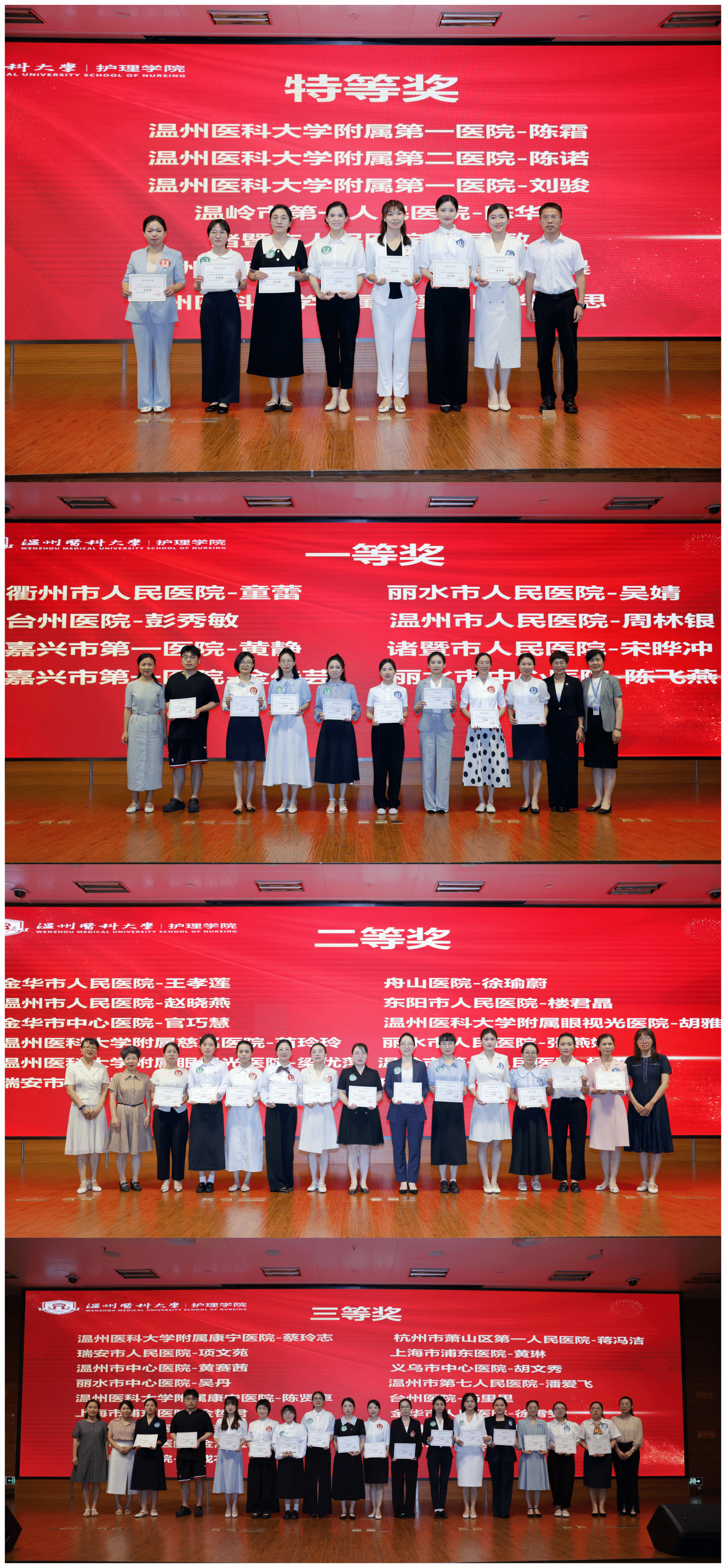 护理临床教学医院及实习基地在人才培养工作中始终秉持高度的责任感与使命感,为护生成长倾注了大量心血。为表彰优秀、树立典型,会议现场隆重举行了颁奖仪式,邀请金伟琼主任、王敏书记、卢丽笋副处长、陈钢副院长、张春梅副院长、金晓童副书记、董超群副院长,分别为本科生优秀临床带教老师及优秀班主任颁发荣誉证书。