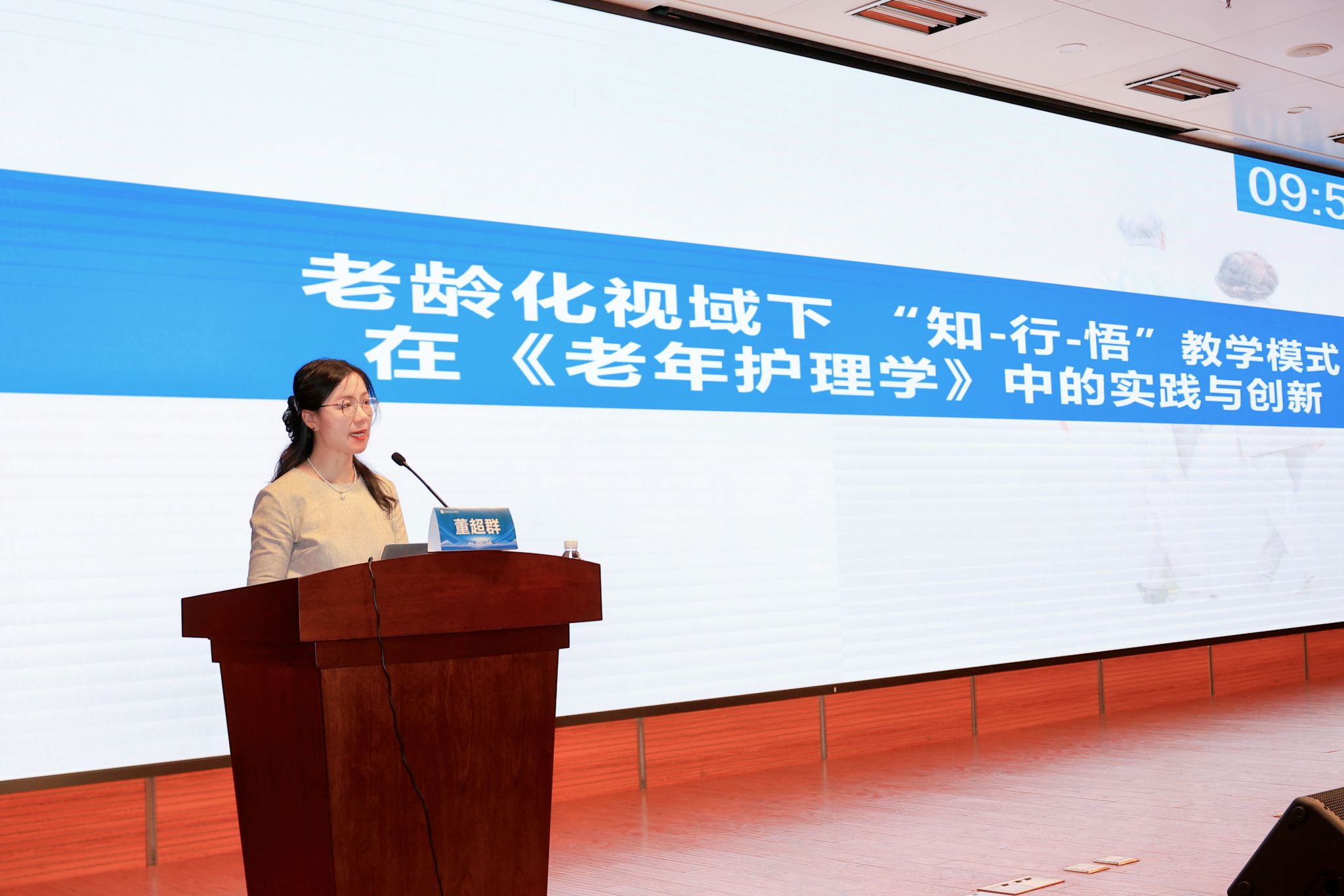 董超群副院长从老龄化社会背景下对老年护理人才的迫切需求出发,深入剖析了传统老年护理学教学模式中的四大痛点,引出“知-行-悟”这一创新教学理念。“知-行-悟”教学模式通过优化课程内容、创设全覆盖体验式学习场景等创新举措,建立“多样化、多元化、多维化”的评价体系,实现了知识传授、能力培养与价值塑造的有机统一。