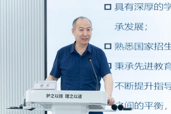 教育部高等学校护理学类专业教学指导委员会委员、天津医科大学taptap点点体育党委书记赵岳教授从立德树人的历史渊源与内涵出发,提出研究生导师的基本素质要求。他聚焦导师作为研究生培养“第一责任人”的角色定位,从培养创新能力、恪守学术道德规范、落实督导检查机制、培养团队合作能力等方面重点阐述了护理专业研究生的培养方法。