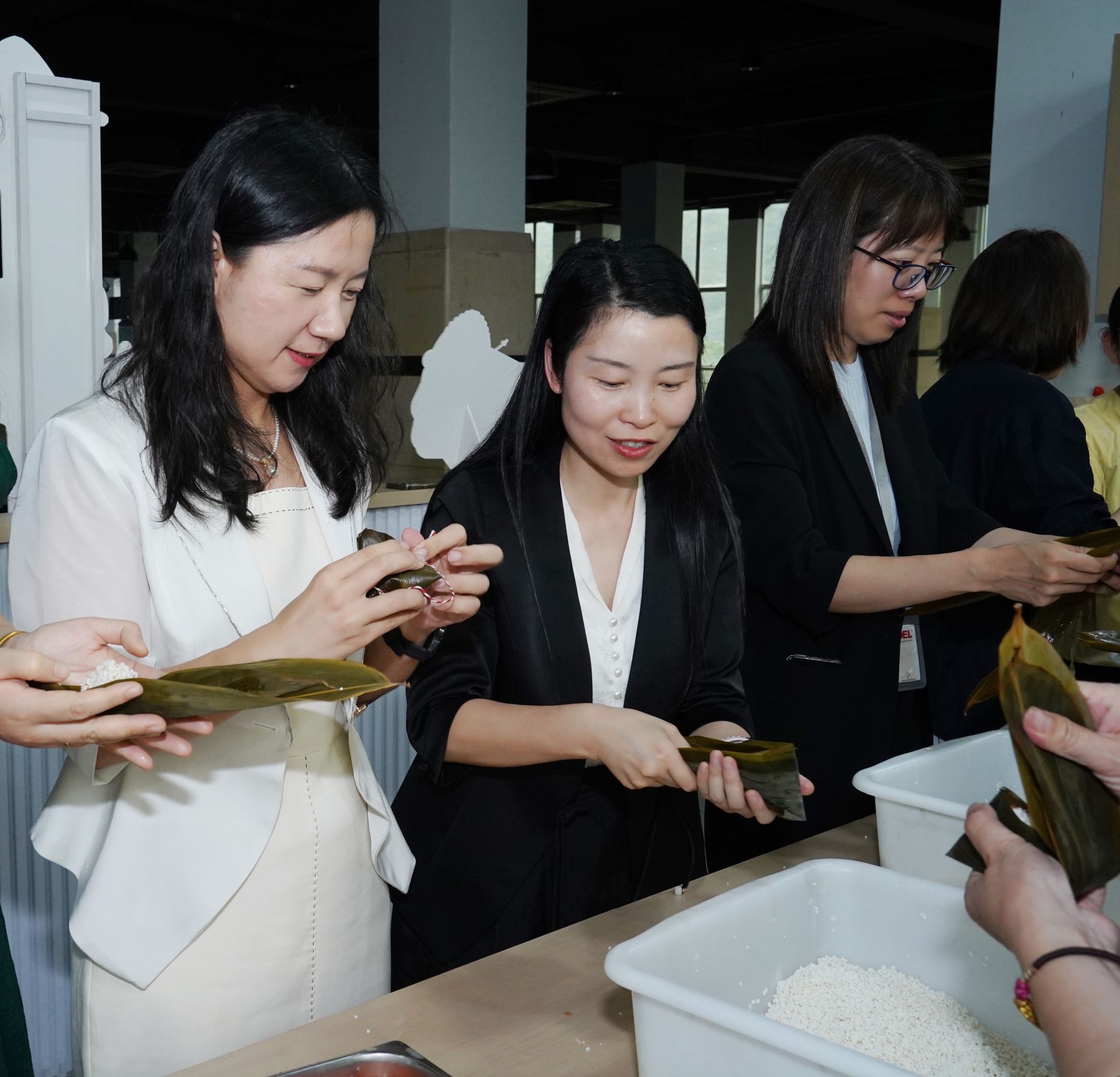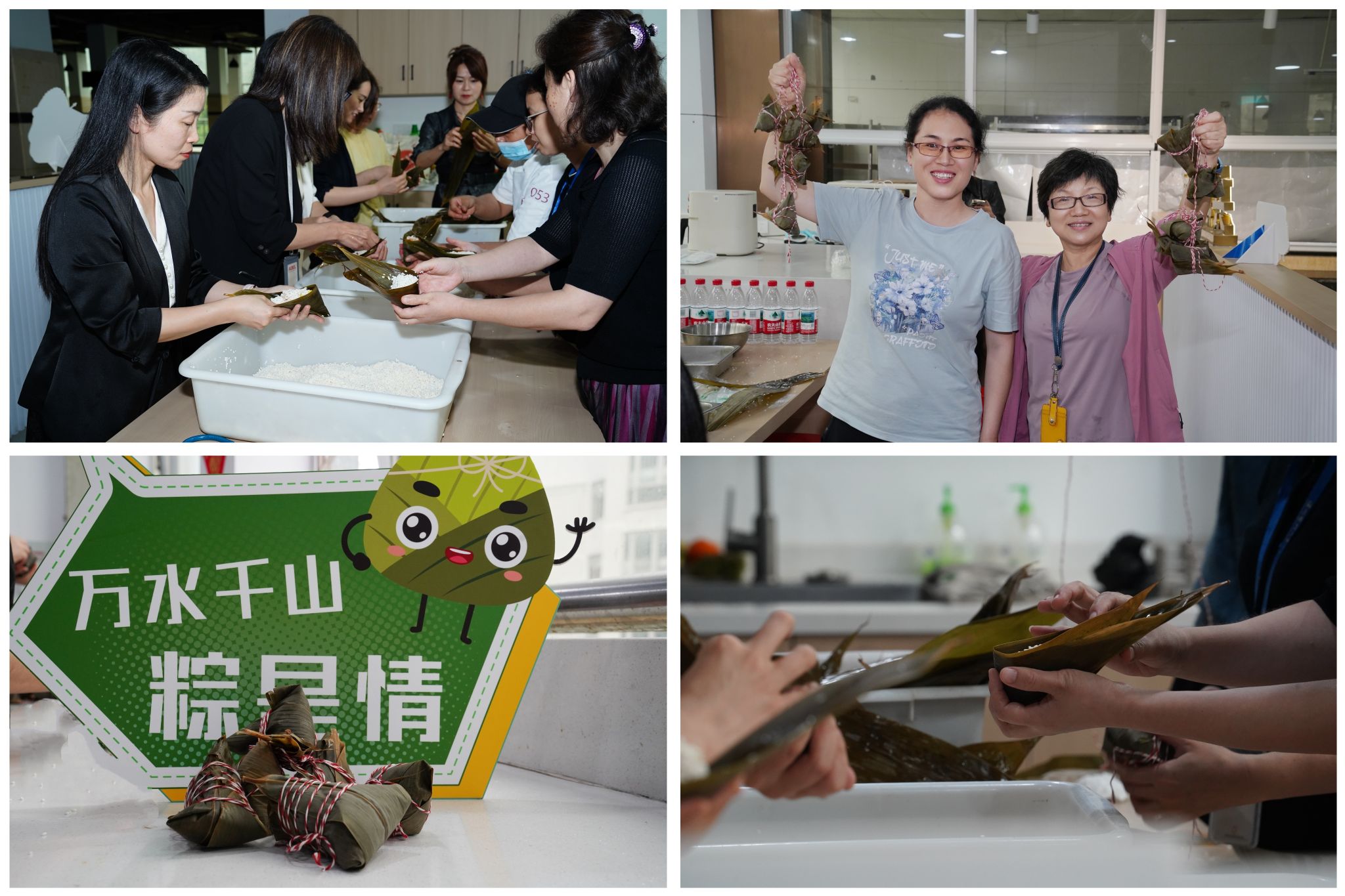 活动现场,食堂阿姨们提前准备了糯米、粽叶、蛋黄、蜜枣等丰富的食材,并现场演示了包粽子的传统技艺。"粽叶要两片叠放,折成锥形,先放一半米,再加馅料......",在阿姨的耐心指导下,老师们从手忙脚乱到渐入佳境。诸多老师纷纷表示,"这是我第一次包粽子,在欢乐中不仅掌握了新技能,也传承了中华优秀传统文化。端午佳节来临之际,提前感受到了节日的氛围、也感受到了学院满满的爱!"