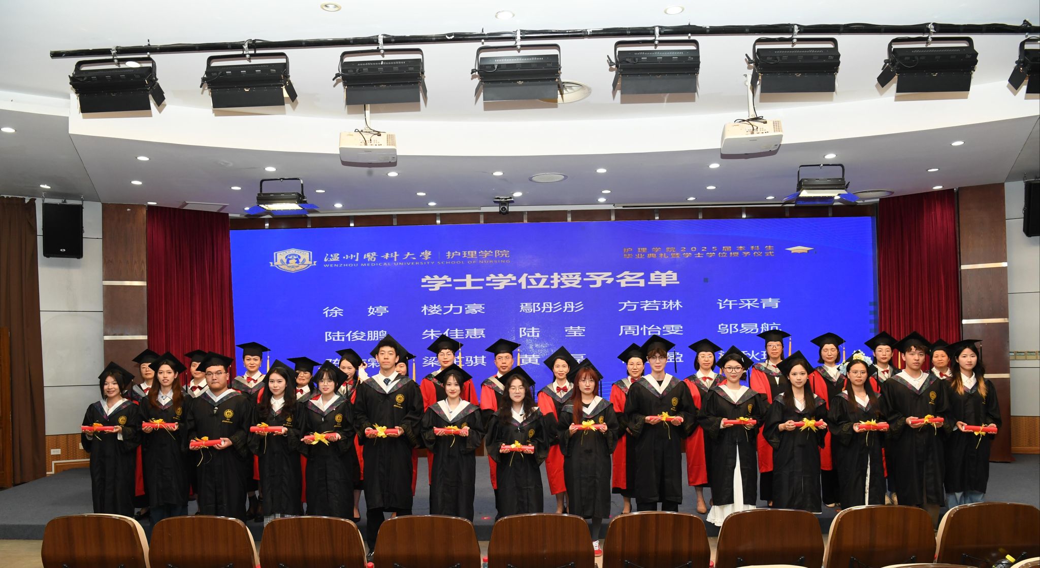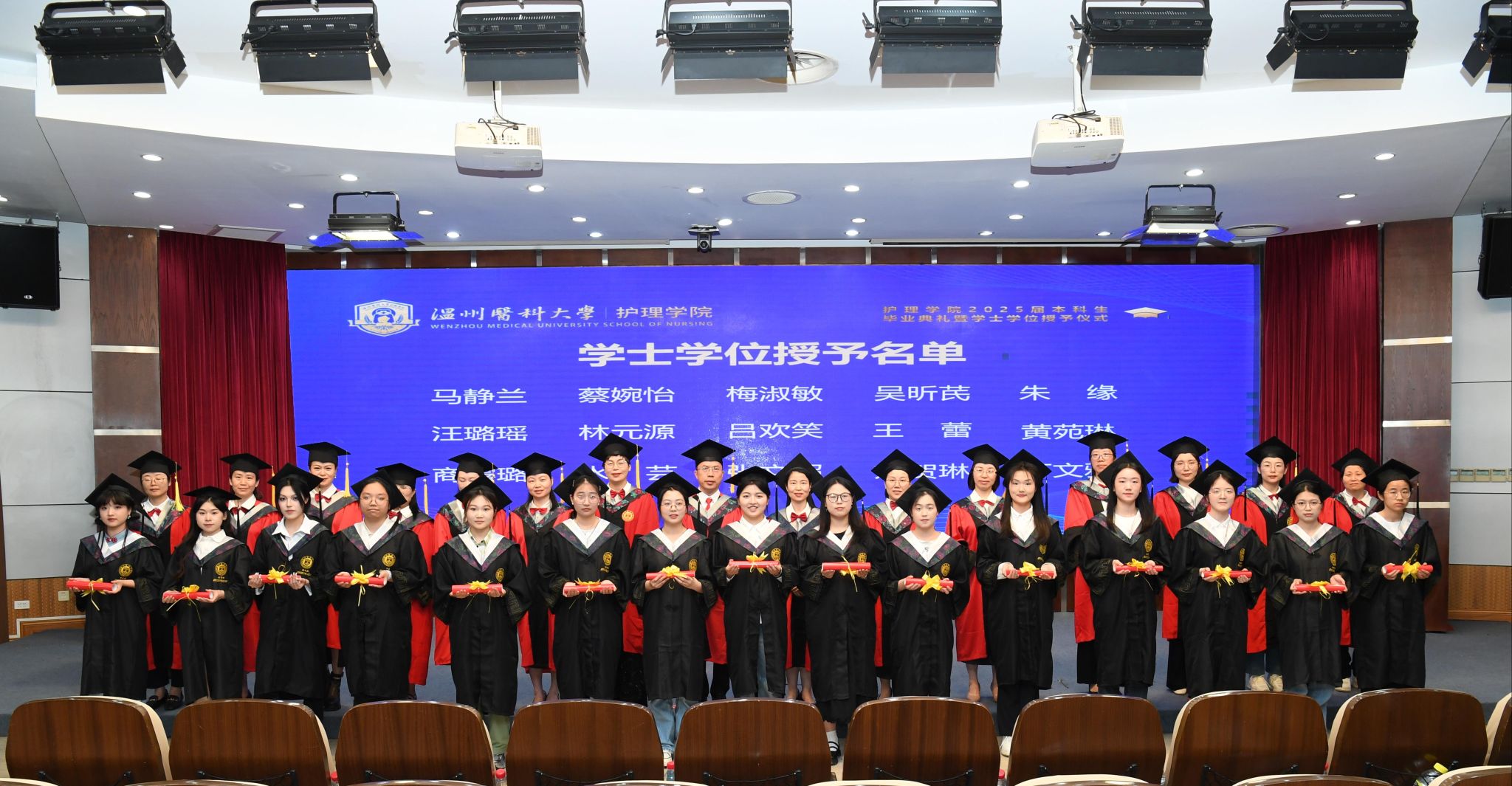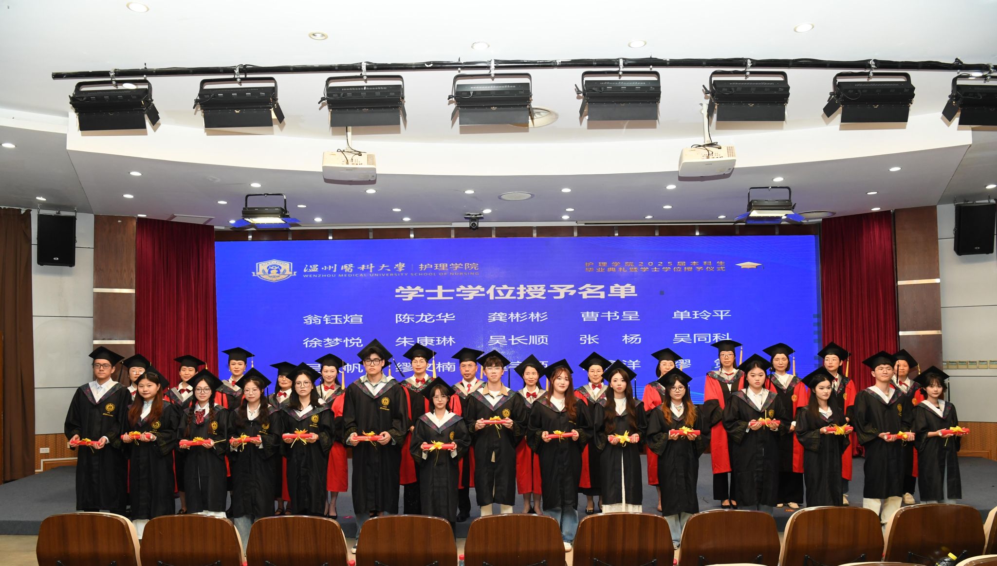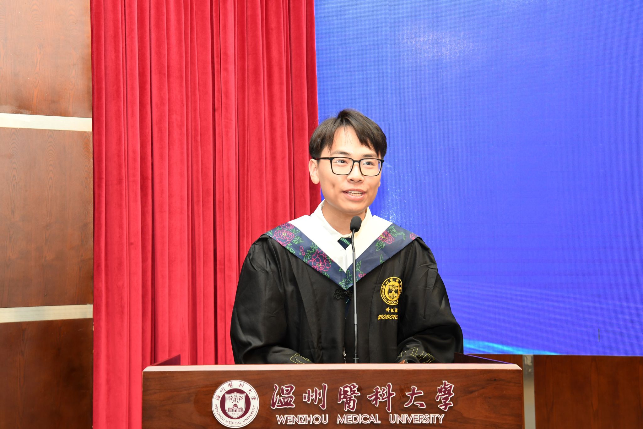 教师代表高晨晨老师寄语同学们,要秉持善良、应变、扎根之精神,在未来道路上不忘初心,笃行不怠,继续书写温医大护理人的使命与担当。毕业生代表许佳滨发言中提到,要铭记学院与老师的教诲,带着在校所学与成长经验奔赴新征程,努力成为有温度、有担当的卓越护理人。