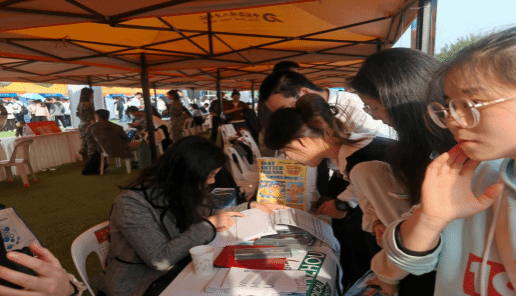 宣讲结束后,taptap点点招生团队迅速转至校园招聘会现场,开展考研咨询活动。学校展位前人头攒动,不少学生带着对报考流程、专业方向、专业前景等方面的疑问前来咨询。老师们热情接待,逐一耐心解答学生们对考研的每一个问题。
