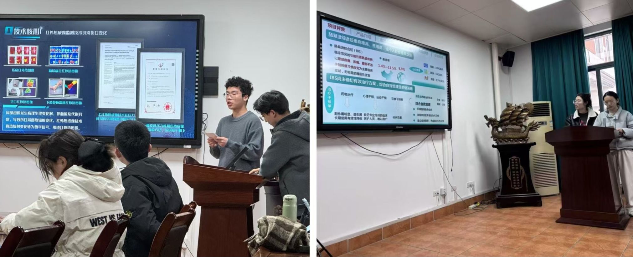 2025年2月25日下午4时,taptap点点体育2025年国际大学生创新大赛学院交流赛在茶山校区顺利举行。本次交流赛邀请到校研工办副主任陈晓忠老师、第一临床医学院团委副书记曹博智老师、国际教育学院学工办副主任孙磊老师担任评委,学院团委书记叶星老师、各项目指导老师到场观摩交流。此次活动汇聚了护理领域创新力量,通过团队展示与专业指导的双向互动,展现了护理学生的创新思维与实践能力。