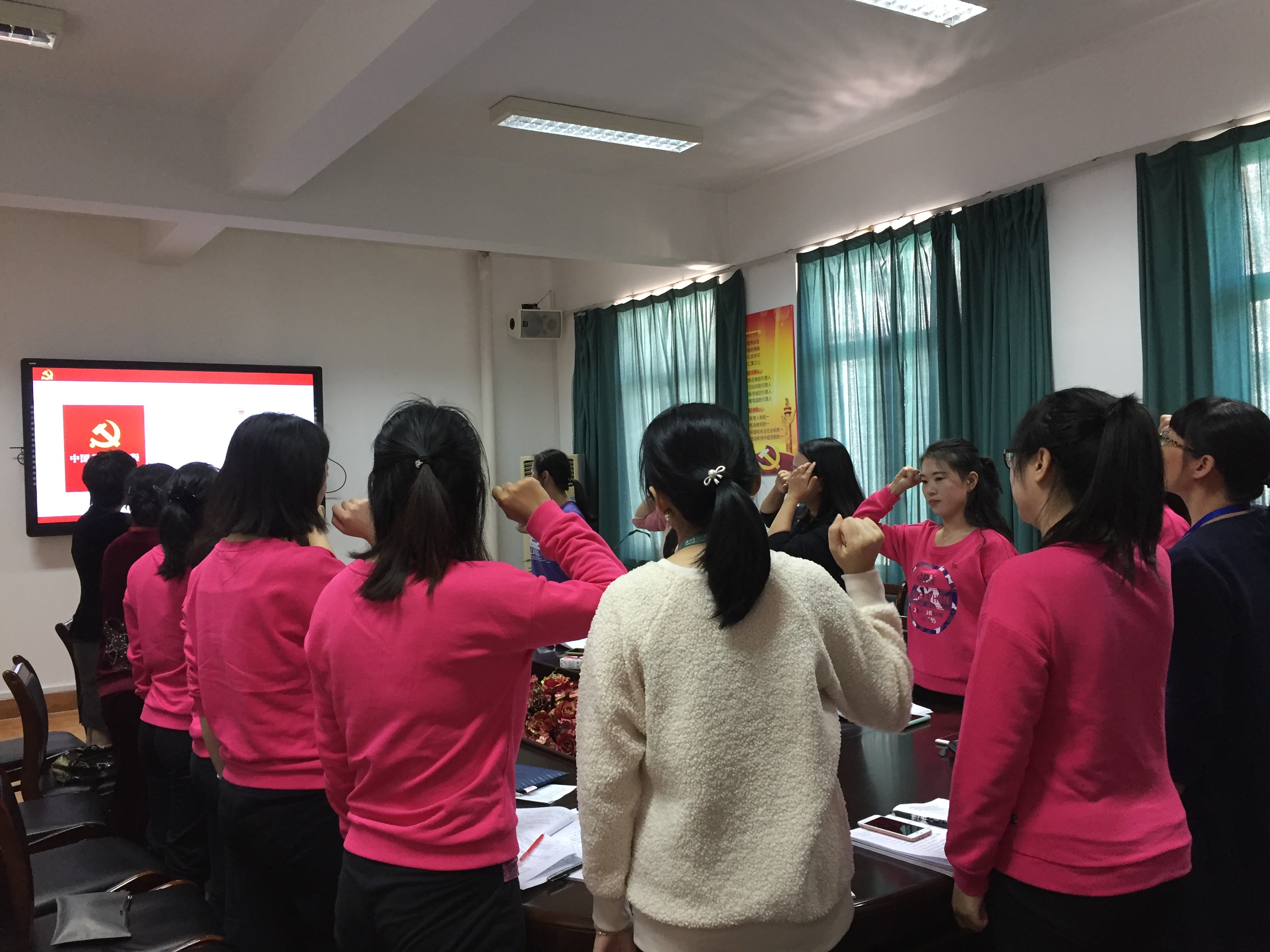 陈慧从历届党代会对党章的修改、修改的重大意义等方面进行了阐述。她指出,党章是党的根本大法,是全党必须遵循的总规矩,是党员加强党性修养的根本标准。我们党员学习贯彻党章,要努力做到“八个牢记”,不忘入党初心,切实增强党的观念和党员意识,坚定信仰、坚定理想信念,对党无限热爱,以身许党、永跟党走,为党的事业奋斗终生。她还引领着党员们重温了入党誓词。