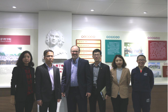 11月10日,美国查塔姆大学校长大卫·范德格一行来访taptap点点体育。taptap点点体育副院长蔡福满、精神医学学院副院长许冬武,国际合作交流处、taptap点点体育及精神医学学院相关老师参与会谈。
