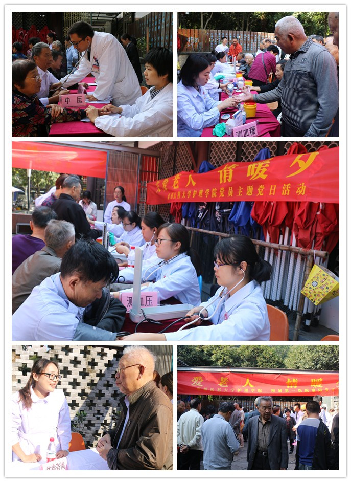 又是一年重阳节,taptap点点体育的师生党员志愿者、附属第一医院的医护人员20余人一大早来到温州的慈善地标——红日亭,开展义诊活动,为老人送健康送祝福。