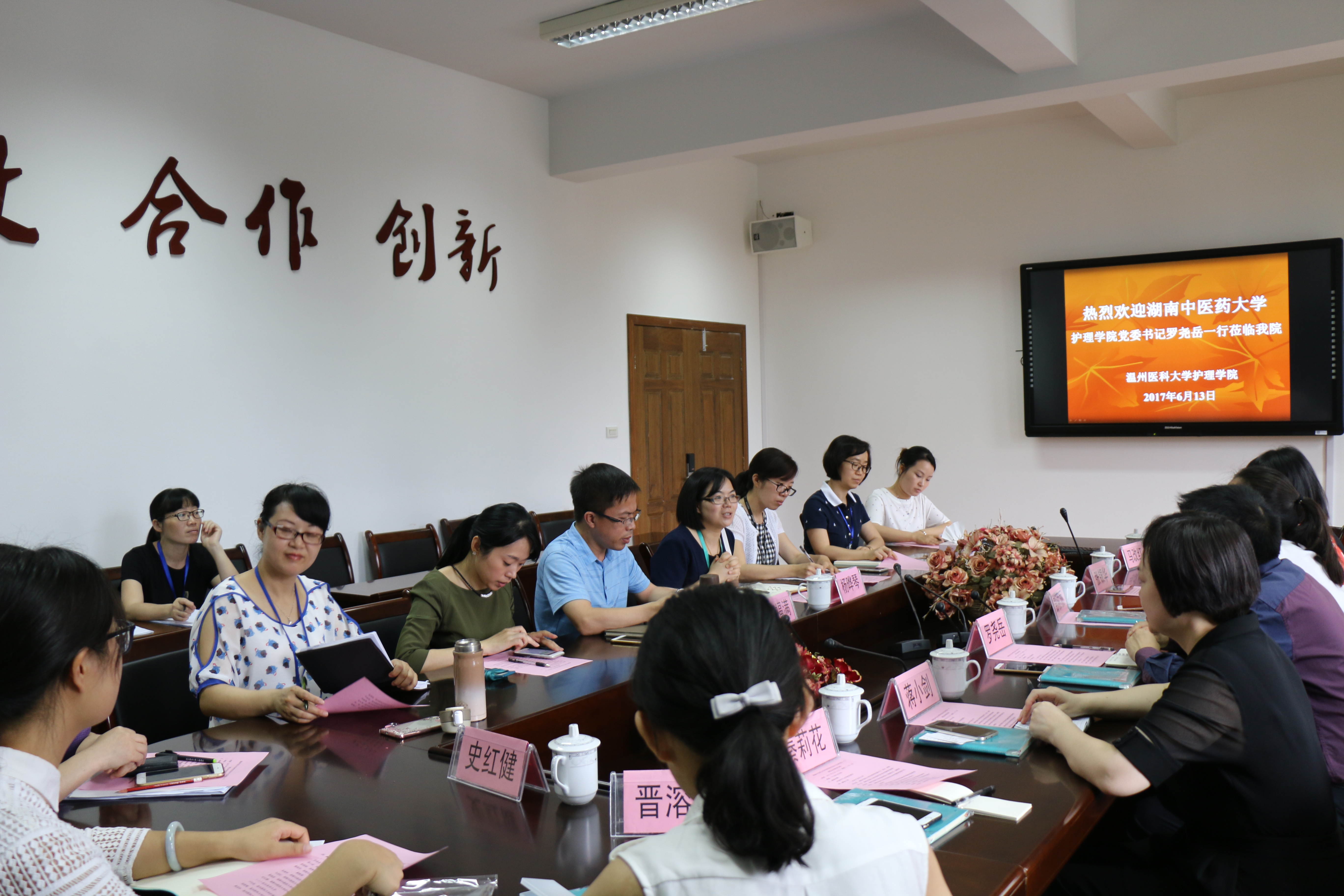 6月13日上午,湖南中医药大学taptap点点体育党委书记、院长罗尧岳一行8人来访taptap点点。副院长蔡福满、杨晔琴等热情接待了来访客人。