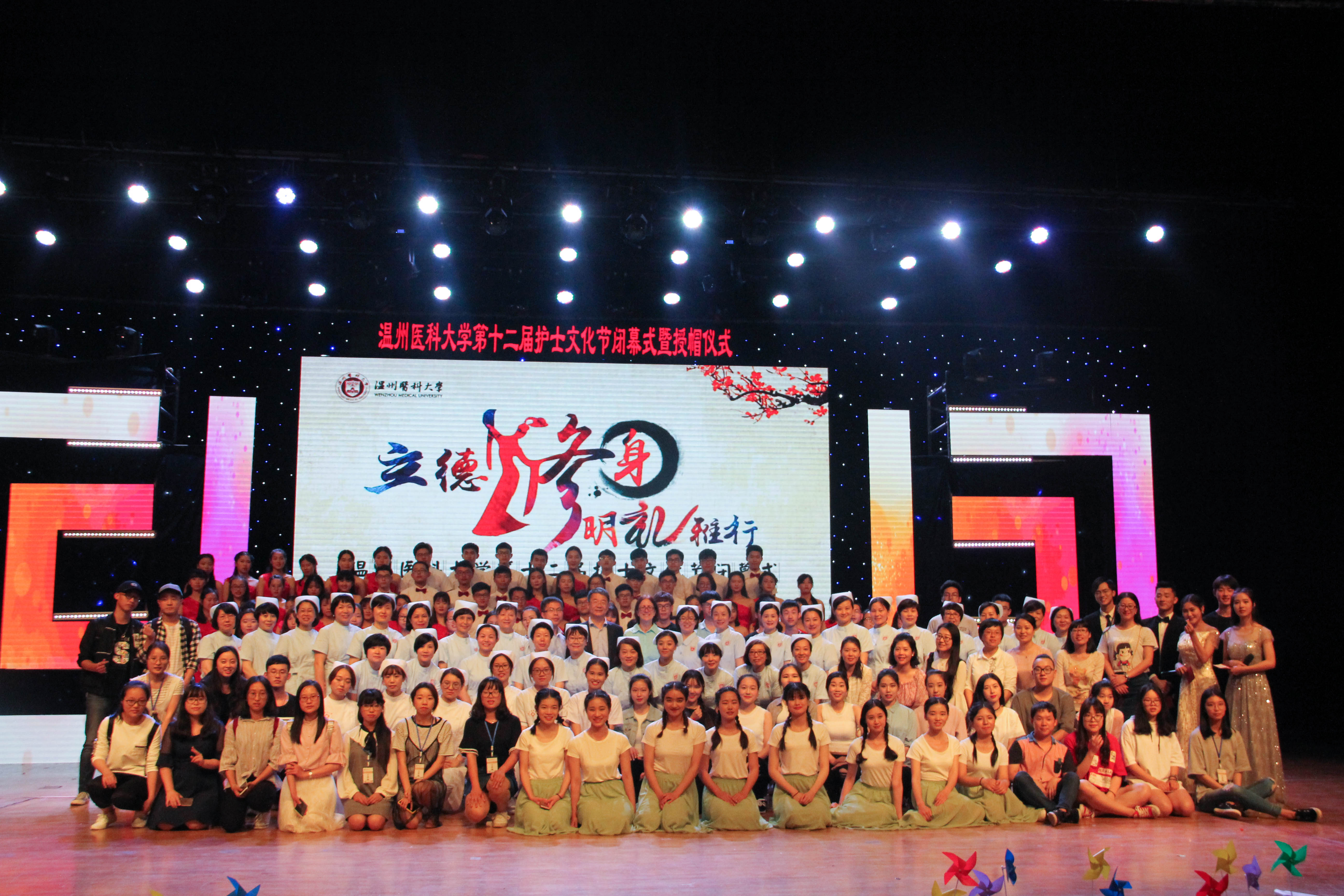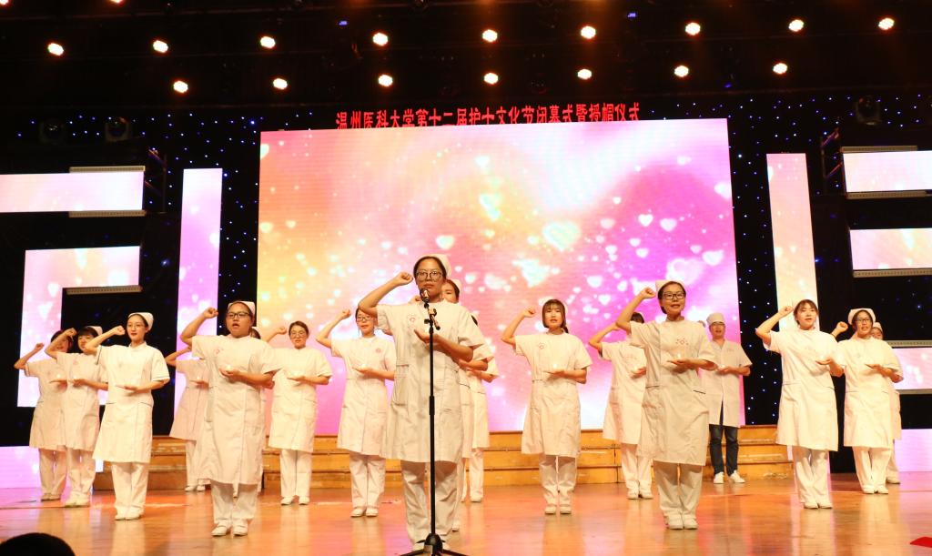 在第106个国际护士节来临之际,校第十二届“立德修身,明礼雅行”护士文化节闭幕式暨授帽仪式在大学生活动中心隆重举行,千余名师生共聚一堂,唱响白衣礼赞。