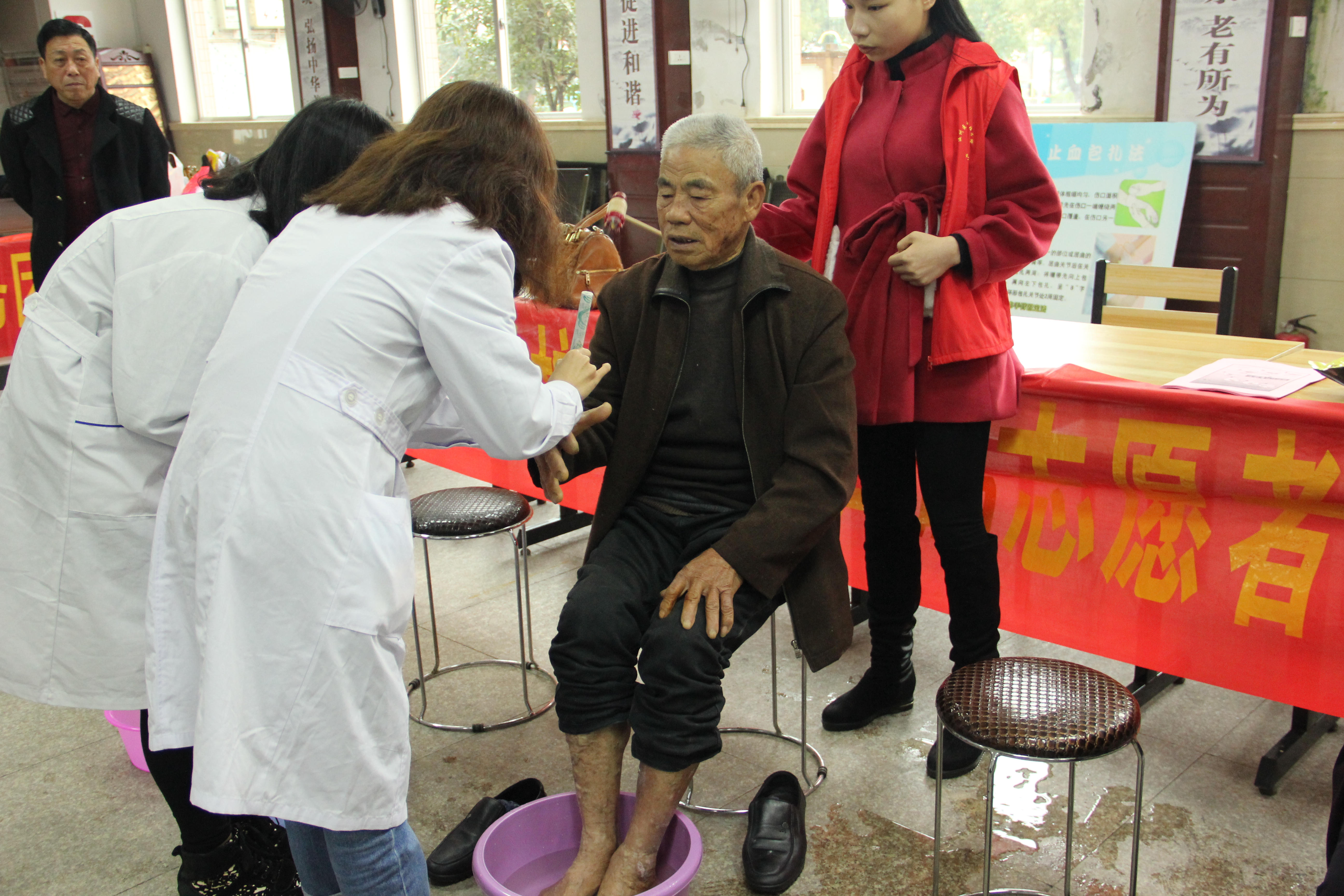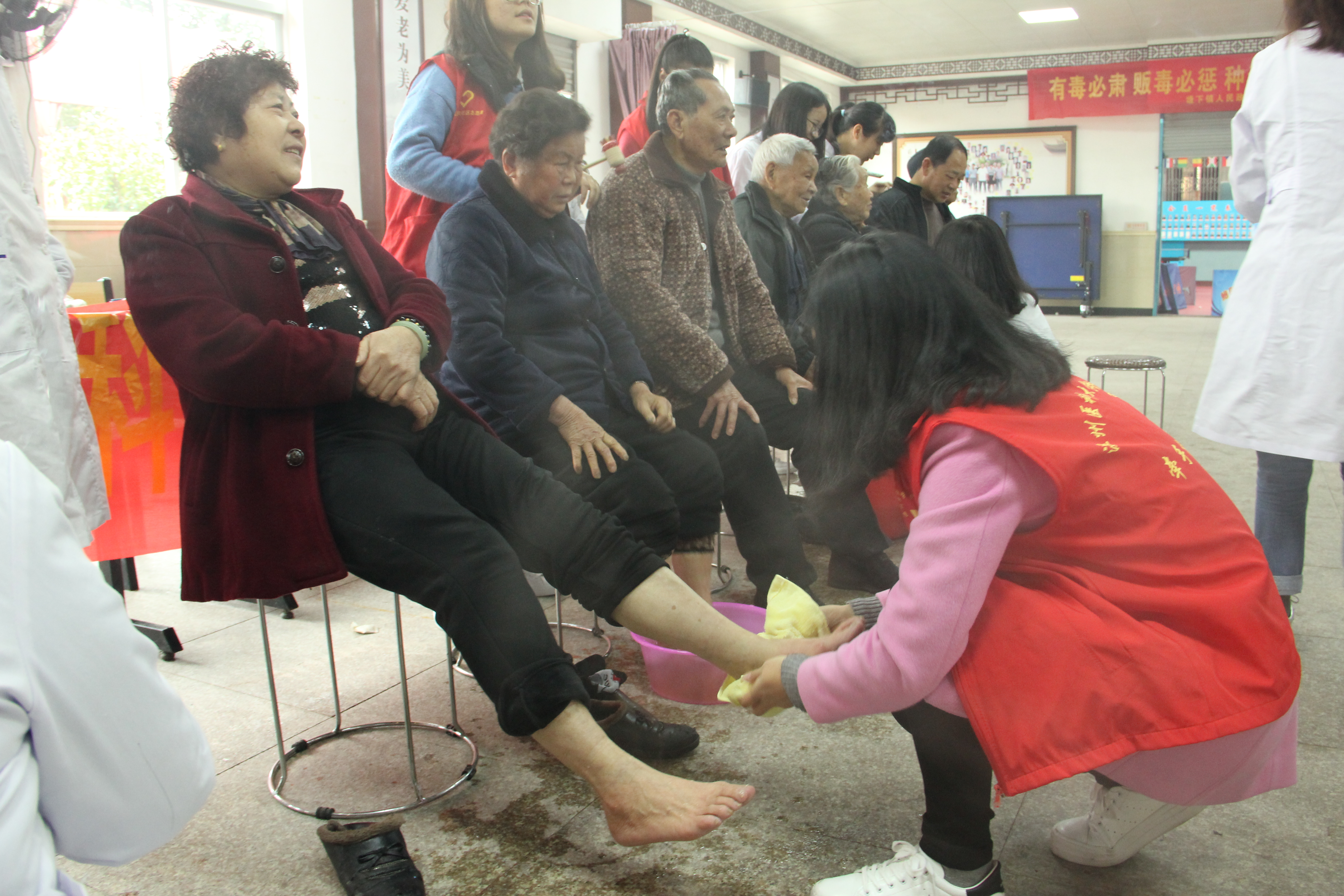志愿者不仅为村民带来了爱心义诊、草药泡脚、艾灸按摩,并开设急救讲堂,开展急救技能培训、推广七步洗手法。此外,志愿者还走上街头宣传春季传染病预防知识,派发精心准备的洗手皂,秒变街头最亮眼的小红帽。特别是为老人们精心准备的艾草泡脚,受到了爷爷奶奶们的热烈欢迎。当一盆盆热水端出来后,志愿者先用手试试水温,待水温合适后,放进艾草包,并将老人的脚泡在水盆中,配上按摩艾熏,完毕后再用毛巾将老人的双脚擦干,热情周到的服务让老人们感动不已。