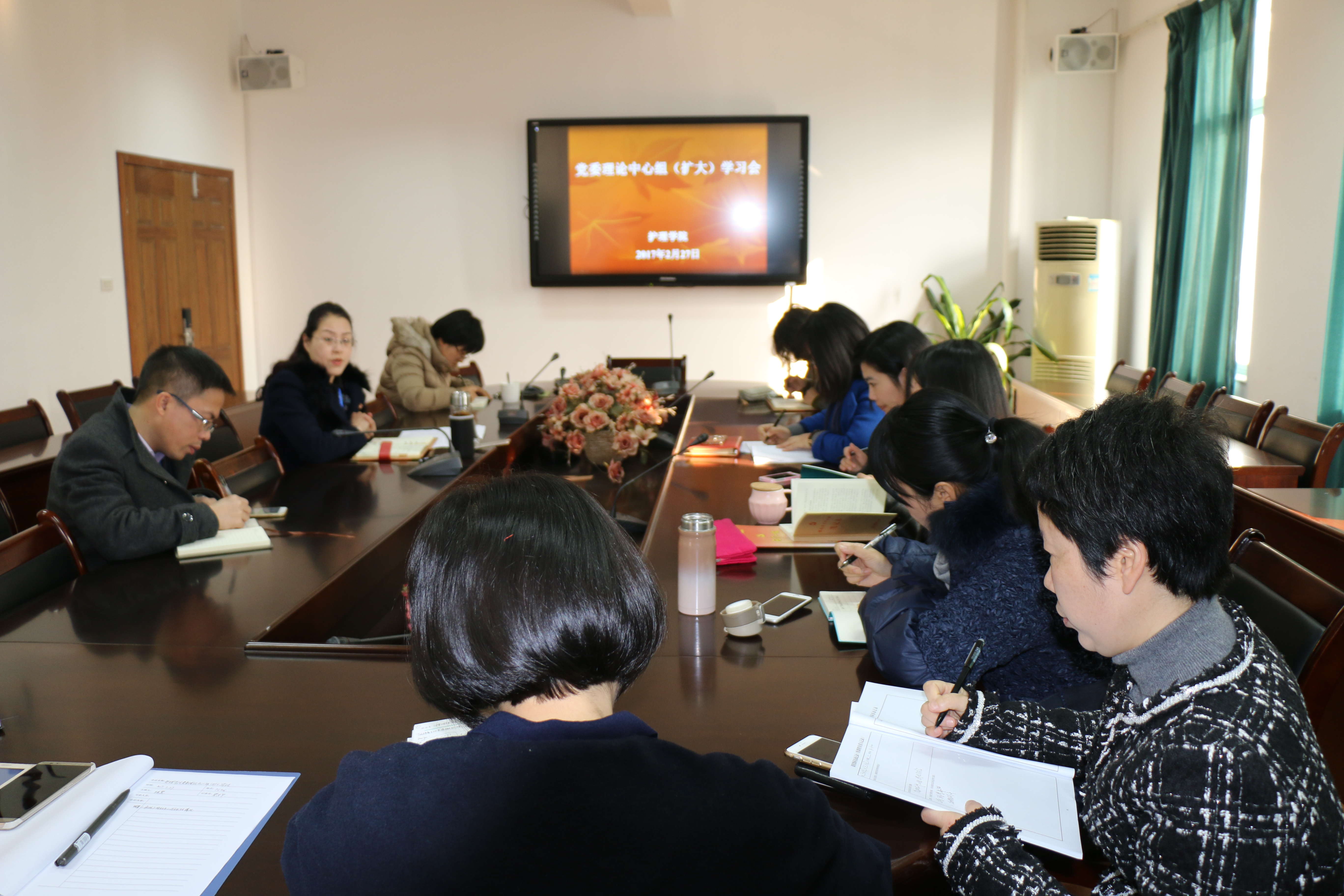 2月27日上午,学院在7C306会议室召开学院党委理论中心组(扩大)学习会,传达学习全省高校思想政治工作会议精神。学院领导班子成员,各科室、教研室负责人参加会议。会议由学院党委书记陈慧主持。