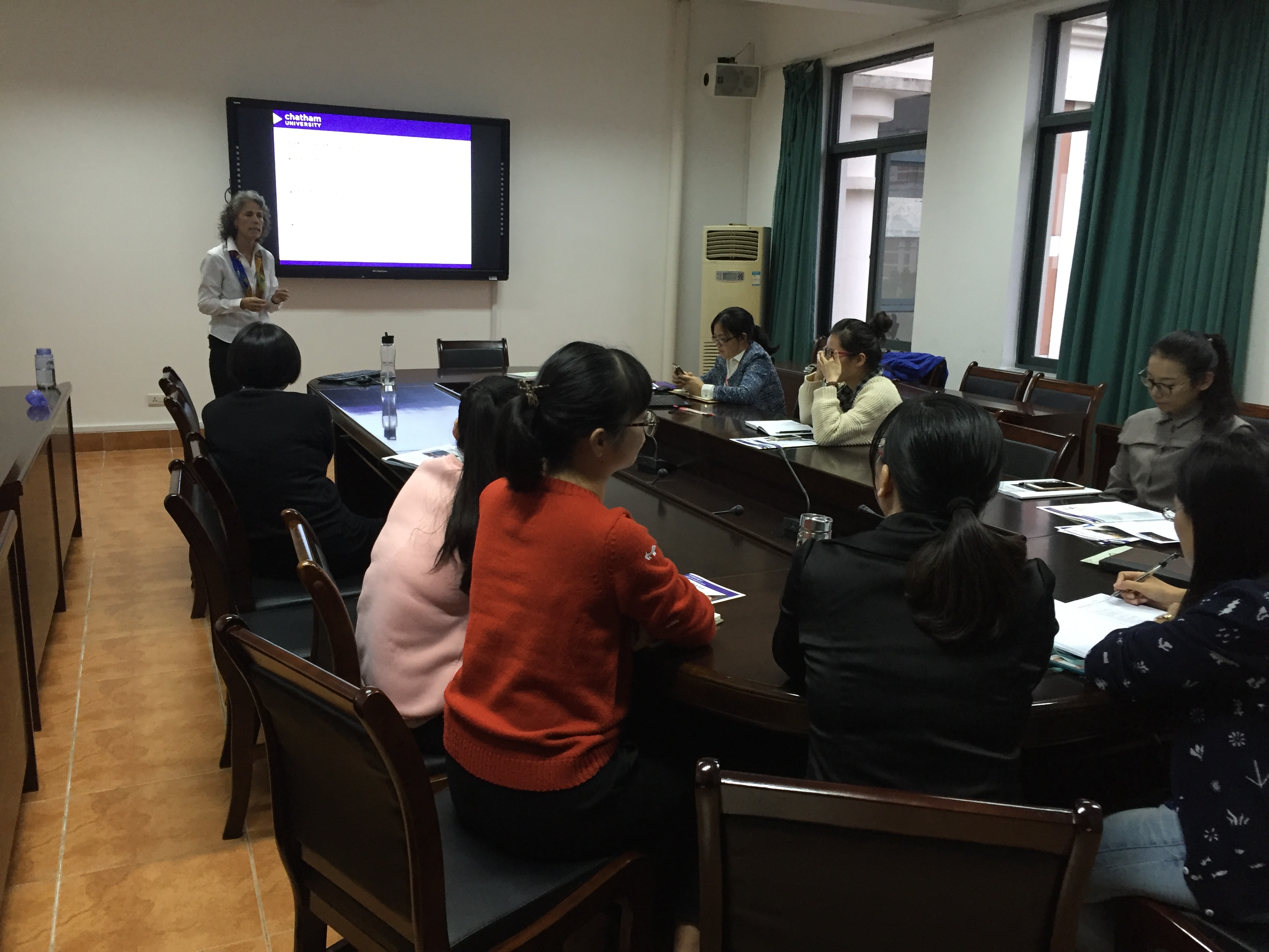 11月8日,美国Chatham大学taptap点点体育Debra Wolf博士来访taptap点点。院长卢中秋、副院长杨晔琴以及各教研室主任、相关专业课教师在7C306会议室与Wolf博士进行了交流。