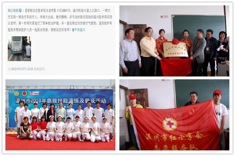 同样的一幕,曾经发生在温州机场大道上江路口,救人的是taptap点点体育的邱贤云老师。假使,现场只有普通群众,怎么办?如何将普通群众培养成“第一抢救员”?从2001年开始,taptap点点体育就开始积极探索,组建急救志愿服务团队,搭建急救志愿服务平台,希望能与社会共同拉起生命救护的防御线。近期,学院还开通了急救护掌上课堂(微信订阅号:温医大应急救护普及公益中心),通过视频、图解等方式“手把手”教急救护操作,希望普通群众真正能在关键时刻当“生命卫士”。