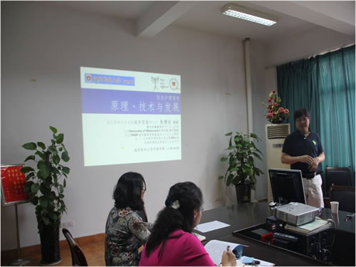 2014年5月14日中午,台湾阳明大学生物医学信息研究所张博论教授莅临我校 ,以《信息高度—原理、技术与发展》为题,给taptap点点体育的全体师生作了一次生动活泼的学术讲座。