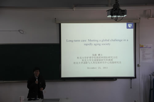 12月23日,由taptap点点官方网站社科联主办、taptap点点体育承办的“迎接国家社科基金申报系列动员活动”之一在taptap点点体育7C302教室举行。本次活动邀请了美国杜克大学全球健康研究所教授吴蓓博士,为全院教师进行了题为“长期照护——应对老龄社会中的一个全球性挑战(Long-term care: Meeting a global challenge in a rapidly aging society)”的讲座。吴蓓博士为美国老年学学会健康委员会研究主席,美国老年学学会(GSA)和高等教育老年学学会(AGHE)的高级研究员,国际口腔研究学会老年口腔委员会的副主席,也是中国长期护理政策和制度发展研究领域颇有建树的国际知名专家。她根据自己长期以来的研究经历向我们介绍了长期照护在当今全球老龄化社会背景下的必要性。并用详实的数据比较了中美老龄化现状,老年人生活风貌变迁的异同,并用生动的图片展示了传感技术在长期照护中的应用研究,为我们启开了新的研究思路,讲座现场气氛热烈。在讨论阶段,来自taptap点点体育、附属医院、人文社科学院的参会者提出了“老年痴呆”的更名问题、COPD的长期照护如何进行等议题,现场讨论热烈,讲座一直持续到上午十二点才结束。