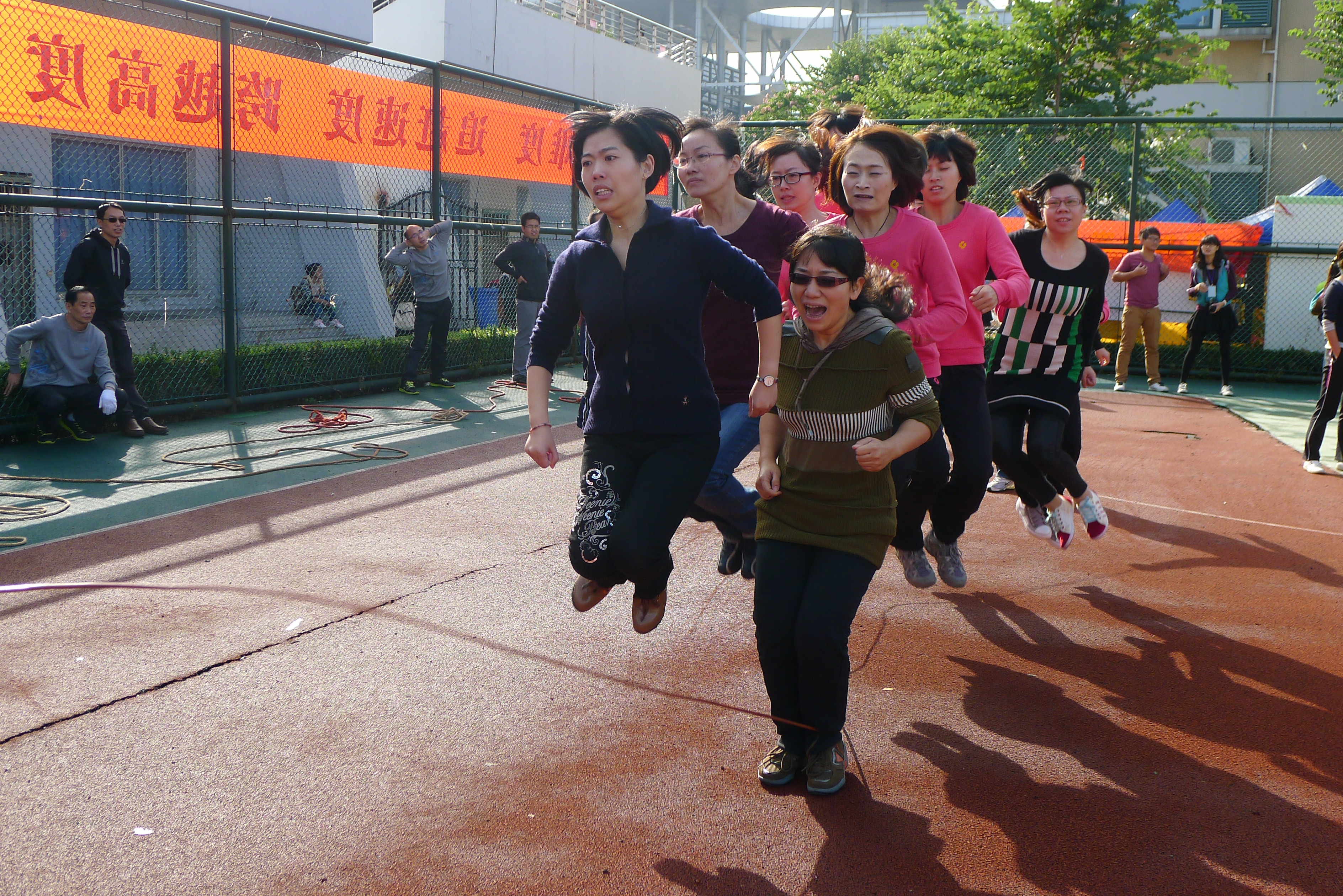 白云悠悠,秋风徐来,田径场后的篮球场上,一条条长绳不停地在舞动,taptap点点体育的女老师化身成女将,积极备战。