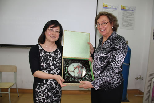 Diane Heliker教授多年来从事老年护理的研究,讲座围绕老年护理中长期照护的安全问题,介绍美国不同形式的老年机构养老模式,强调系统评估老年人的重要性,探讨如何针对不同文化背景的老年人进行全面的有针对性的个性化的整体照护。参与讲座的老师、学生也针对讲座内容与各自感兴趣的话题与Diane教授进行了愉快的交流。会后,姜丽萍院长代表taptap点点体育赠送礼物以表示对Diane教授的感谢。