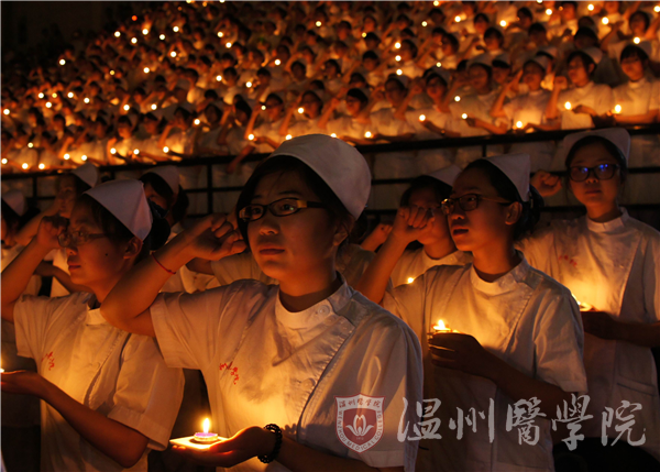 “就让我们用实际行动,传承她们手中熠熠生辉的薪火,将这份炙热的大爱温暖每一位患者的心灵!”“我们要时刻牢记南丁格尔精神,用耐心、爱心、责任心对待每一位病人,履行护士救死扶伤、防病治病的天职,用我们的青春与热情托起生命的春天!”748名温医护理学子及医院里年轻的护士们在柔和的音乐和温热的烛光中接受护理前辈们的授帽,宣誓成为一名守护生命的天使。