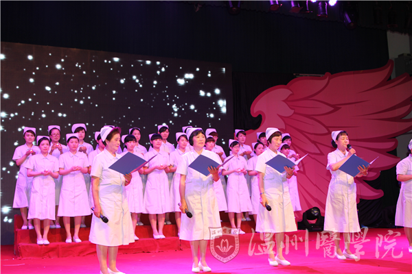 在5月8日晚的茶山校区活动中心,准护士们载歌载舞庆祝他们未来的节日。晚会分回眸百年、传承之史、绽放新生三个篇章。晚会上,他们用优雅的舞蹈《壁影之吻》展示着属于护生独特的美,他们用悠扬的歌曲《感恩的心》传递着他们对师长、对同学的感激之情,歌曲《庆祝》让全场洋溢着欢乐,歌曲《我相信》、《再见》、《启程》,表达了对大学生活的纪念和对未来工作的希望……