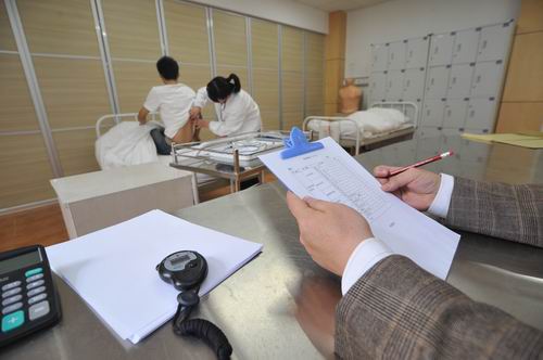 竞赛项目分为内外科操作、病史采集与体检、急救技术与辅助检查判断及分析三个内容,教务处吴丽惠副处长、taptap点点体育廖毅副院长亲自到场指挥,赛场井然有序,考官们认真严谨、选手紧张兴奋,整个赛事顺利进行。
