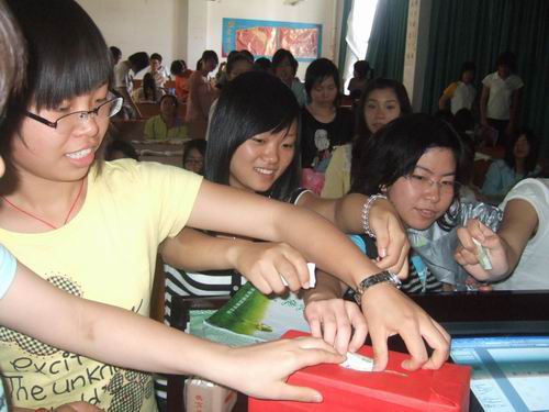 5月15日,05—07年级全体在校护生,自发组织捐款,共募捐得6120.3余元。同时,护生们还积极向社会募集捐助。如07级护本3班的学生以横幅签名,发放传单的形式在温州茶山镇上募集到1839.7元。也有护生采用捐衣捐物等各种形式,只为帮助四川同胞。所有的捐助,学生一分不少地交到了温州市红十字会。