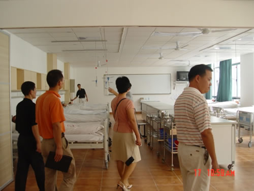 陈行汉副书记向客人们介绍了学校和学院的办学历史,护理专业的发展情况。学院办公室王世泽老师向客人们详细汇报了学院的招生就业、学科建设、人才培养、实验室建设、教学管理和实习基地建设等有关方面情况。朱卫民院长也向我们简单介绍了广西医科大学taptap点点体育的教学、科研和人才培养情况。随后客人们参观了学院护理学基础、急救护理学、外科护理学、妇儿实验室和护理示教室,他们详细了解了实验室建设规划、布局等情况,对taptap点点的实验室建设和教学管理工作大加赞赏。