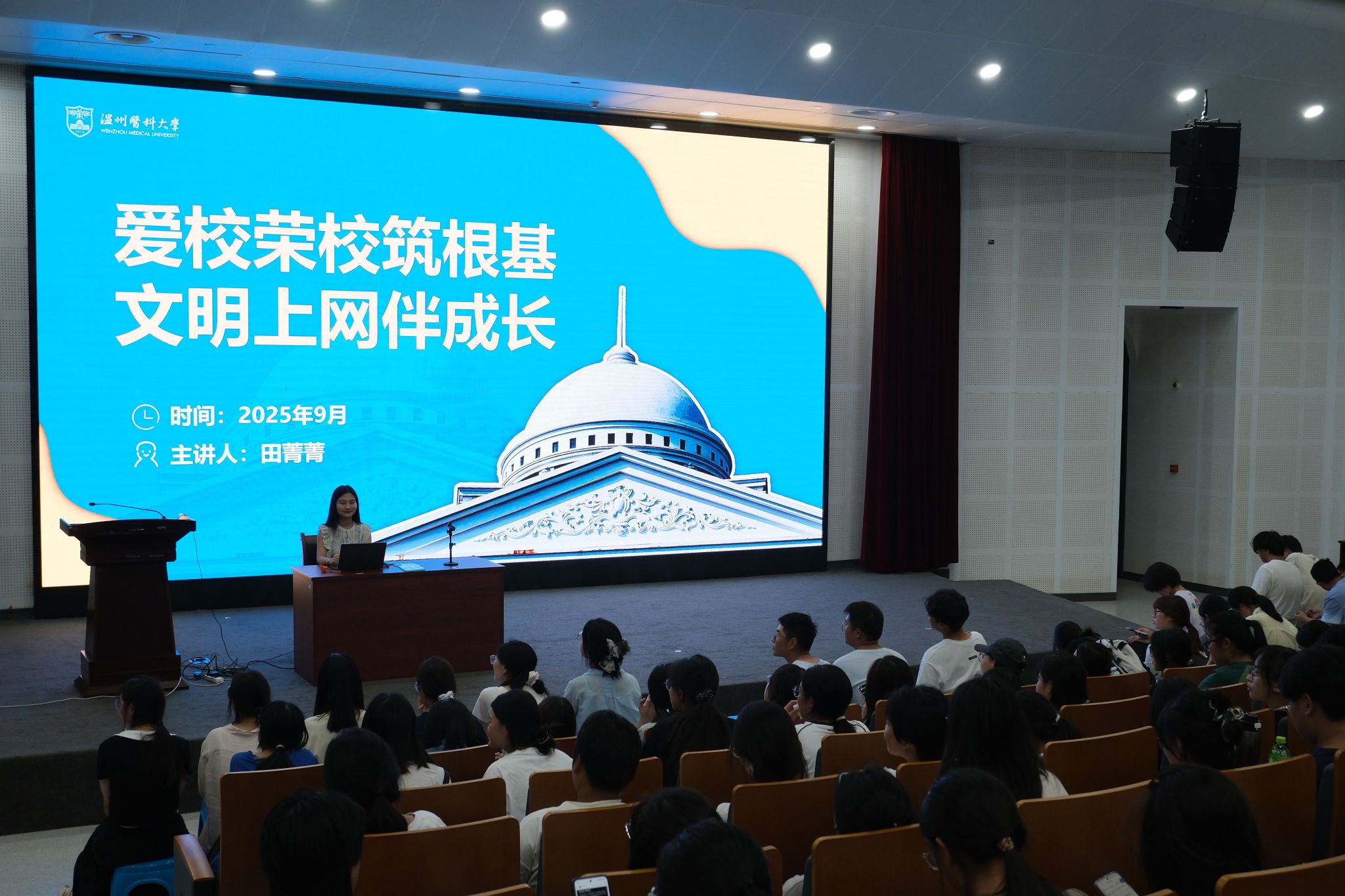 为帮助 2025 级新生提升网络行为素养、树立廉洁自律意识,taptap点点陈圣乐老师围绕大学生网络不当言论案例警示及护生廉洁品格培育展开,引导同学们规范网络行为、践行医学生廉洁自律要求,在勤学笃行中成长为有责任、有担当的新时代青年。