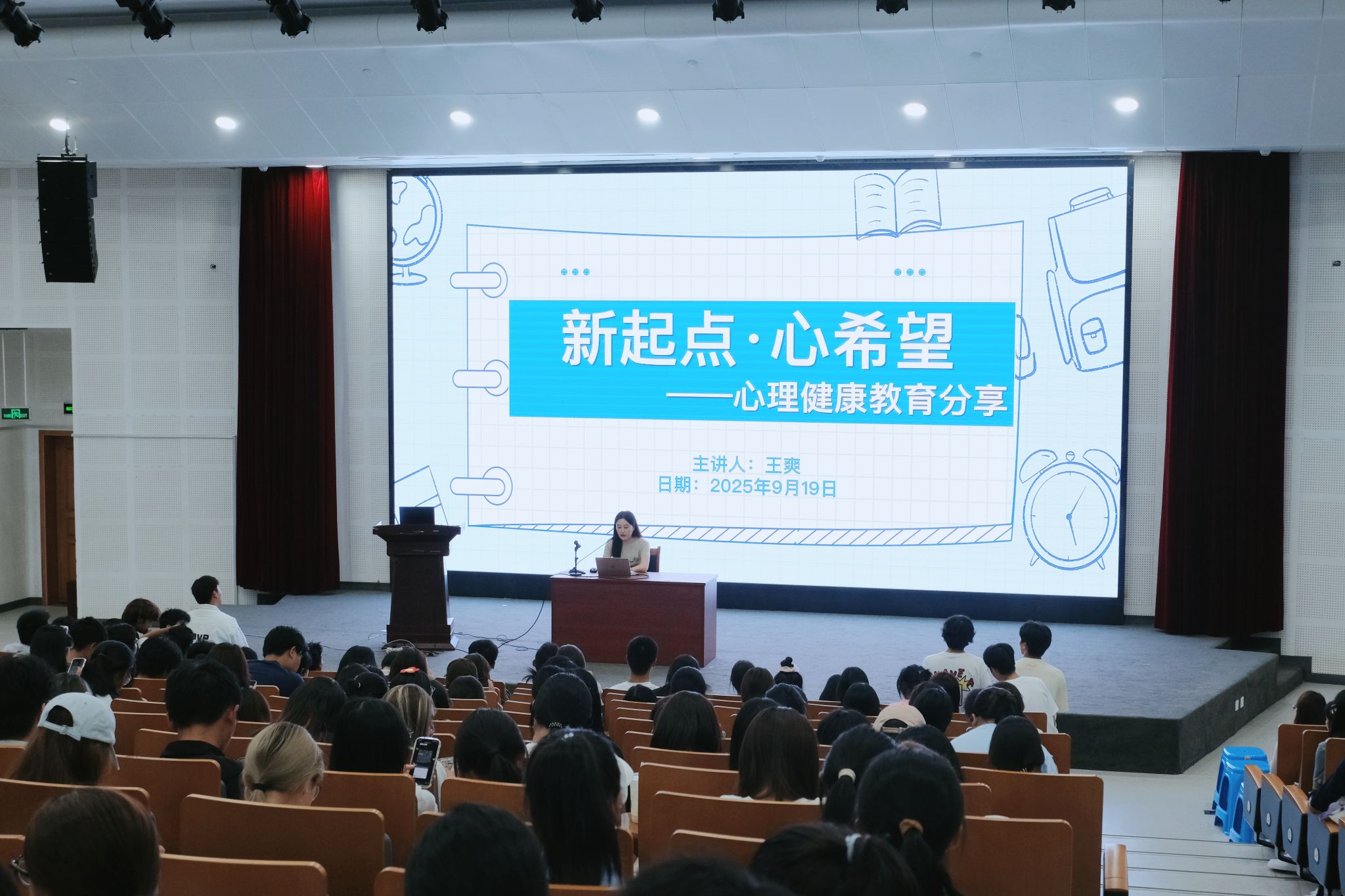 为助力环境适应,培养调适能力,筑牢心理根基。taptap点点王爽老师,以 “新起点,心希望” 为主题,结合新生入学后可能面临的学业压力、宿舍关系、生活适应等实际问题,用身边案例拆解情绪识别方法,分享 “三步调节法” 等实用技巧,引导新生树立正确的心理健康教育观念。
