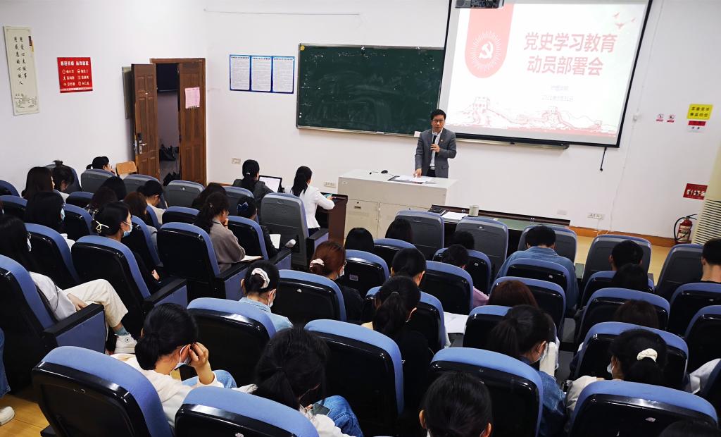 3月31日下午,学院在7C302教室召开党史学习教育动员部署会。会议强调,开展党史学习教育,是党中央立足党的百年历史新起点统筹“两个大局”,奋力开启全面建设社会主义现代化国家新征程作出的重大决策。会议号召把党史学习教育成果转化为推动学院高质量发展的实际成效,以优异成绩庆祝中国共产党成立100周年。院党委书记李旭东作动员讲话,会议由院党委副书记周恩红主持,学院师生党员参会。