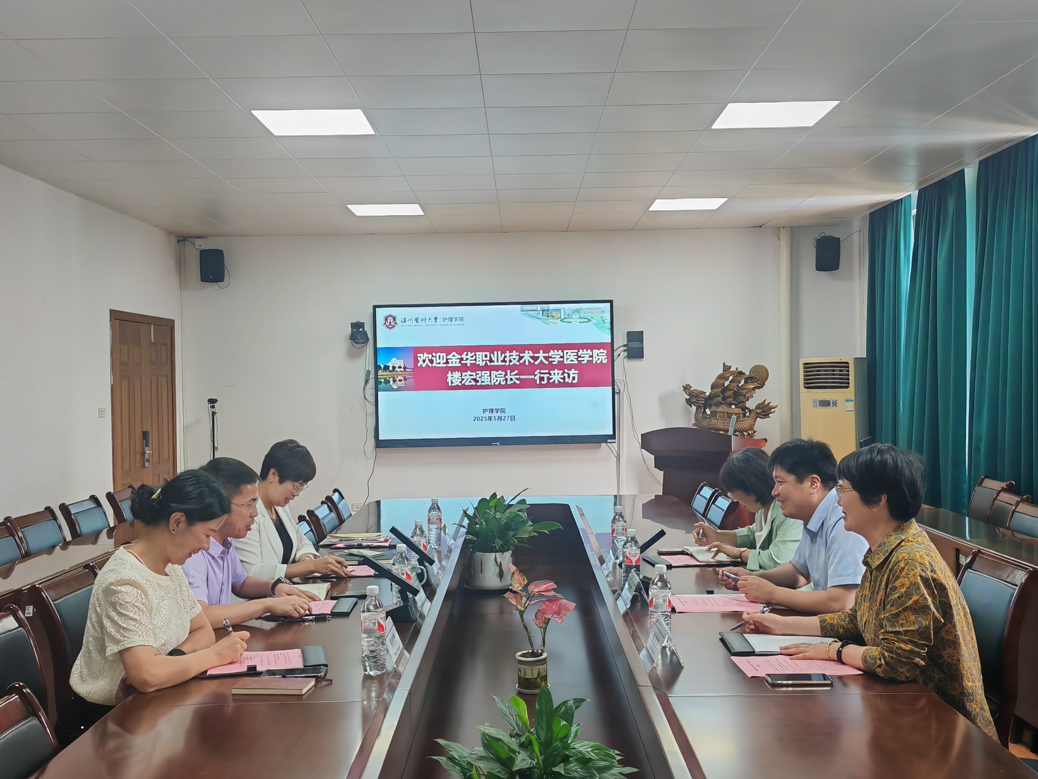 5月27日上午,金华职业技术大学医学院楼宏强院长一行到taptap点点访问交流。taptap点点体育院长蔡福满、副院长黄小琼、副院长董超群及教学办参加会议。