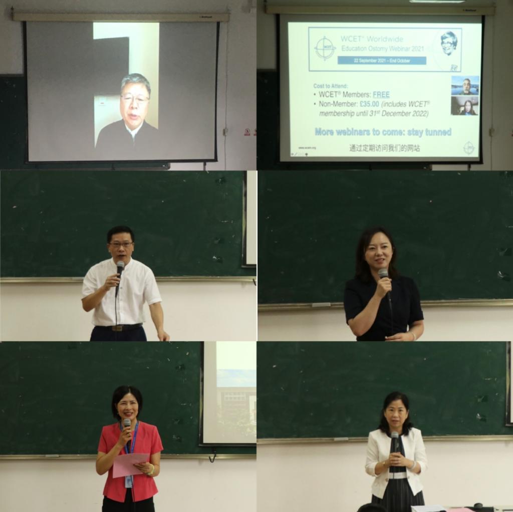 国际造口治疗师协会主席 Elizabeth A. Ayello、候任主席 Laurent Chabal首先致辞,祝贺各位学员进入学习新阶段,并介绍了WCET涉及的领域及其执行董事会和成员构成的基本情况,分享了官网提供的便携式教育书、袖珍指南等多种教育资源的获取方式,并邀请大家成为WCET的一员,积极参与由WCET主办的网络研讨会。
