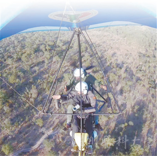 在津巴布韦的马纳波尔斯国家公园,中国和当地反盗猎志愿者驾驶动力三角翼进行空中巡护。
