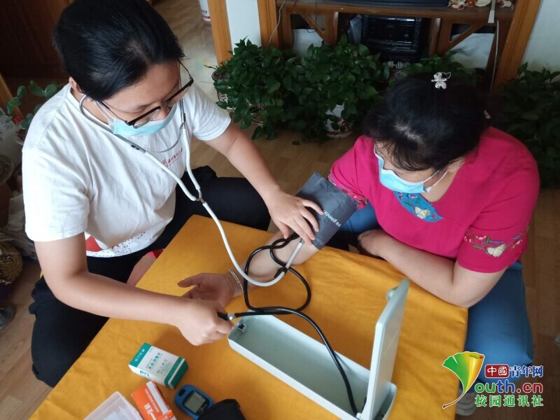 图为实践队为当地居民测量血压。中国青年网通讯员 范雪 提供